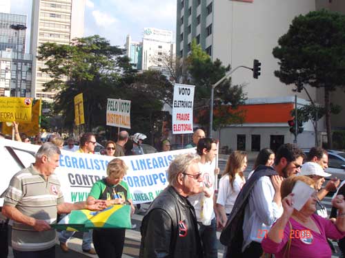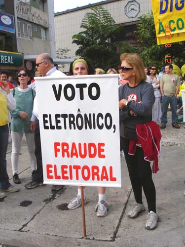 A pesquisadora Beth Osuch organizou a manifestação de desconfiança sobre as urnas eletrônicas dentro da Marcha Brasil Contra a Corrupção que, no dia 27 de agosto de 2006, percorreu a Av. Paulista em São Paulo.