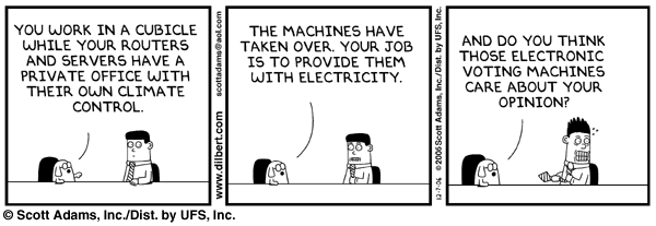 Você trabalha num cubículo enquanto os computadores servidores e roteadores têm um escritório privativo com ar condicionado próprio.