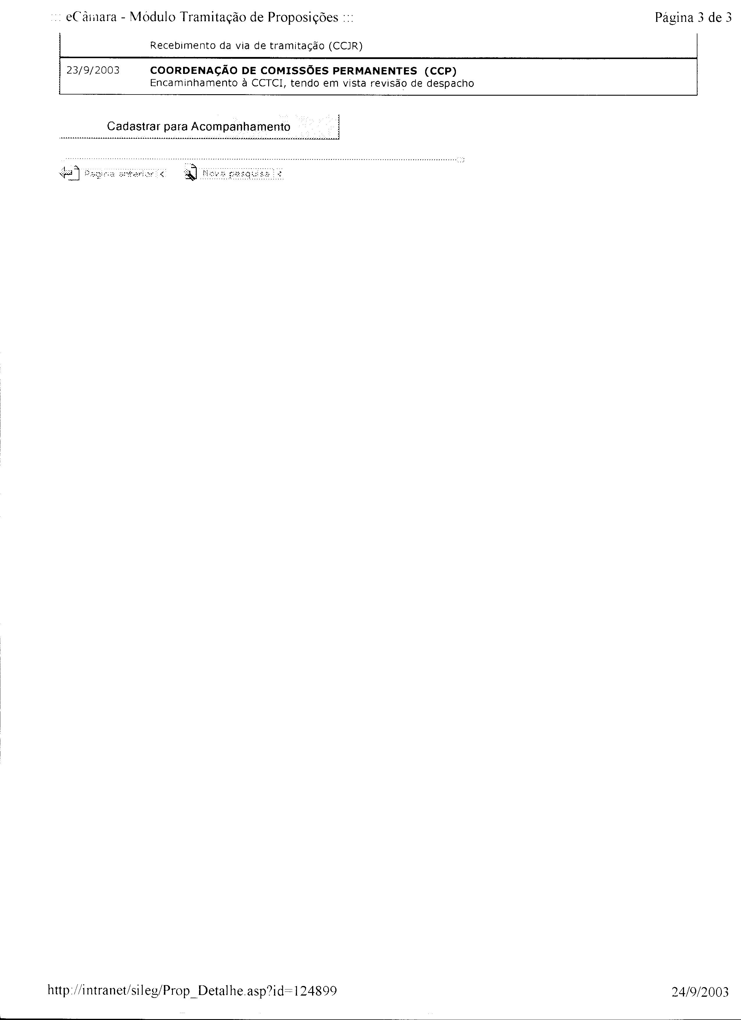Documento 6 - Folha de acompanhamento do PL 1503/03 emitida em 24/09/2003 pelo Sistema de Consulta de Proposições do eCâmara, com registro: